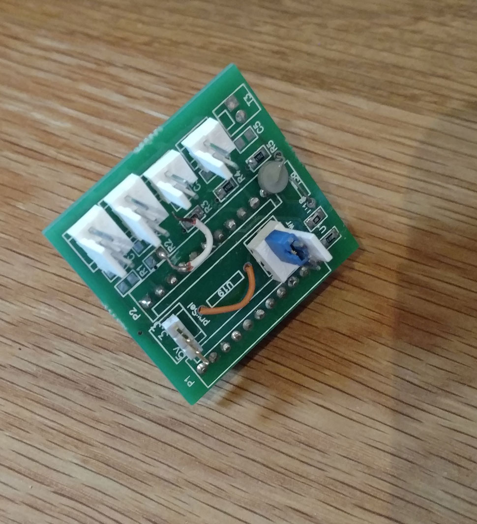 My original design for these was a now-primitive processor with C code and a simple mono display and a few buttons. The board looked like this (top and bottom):